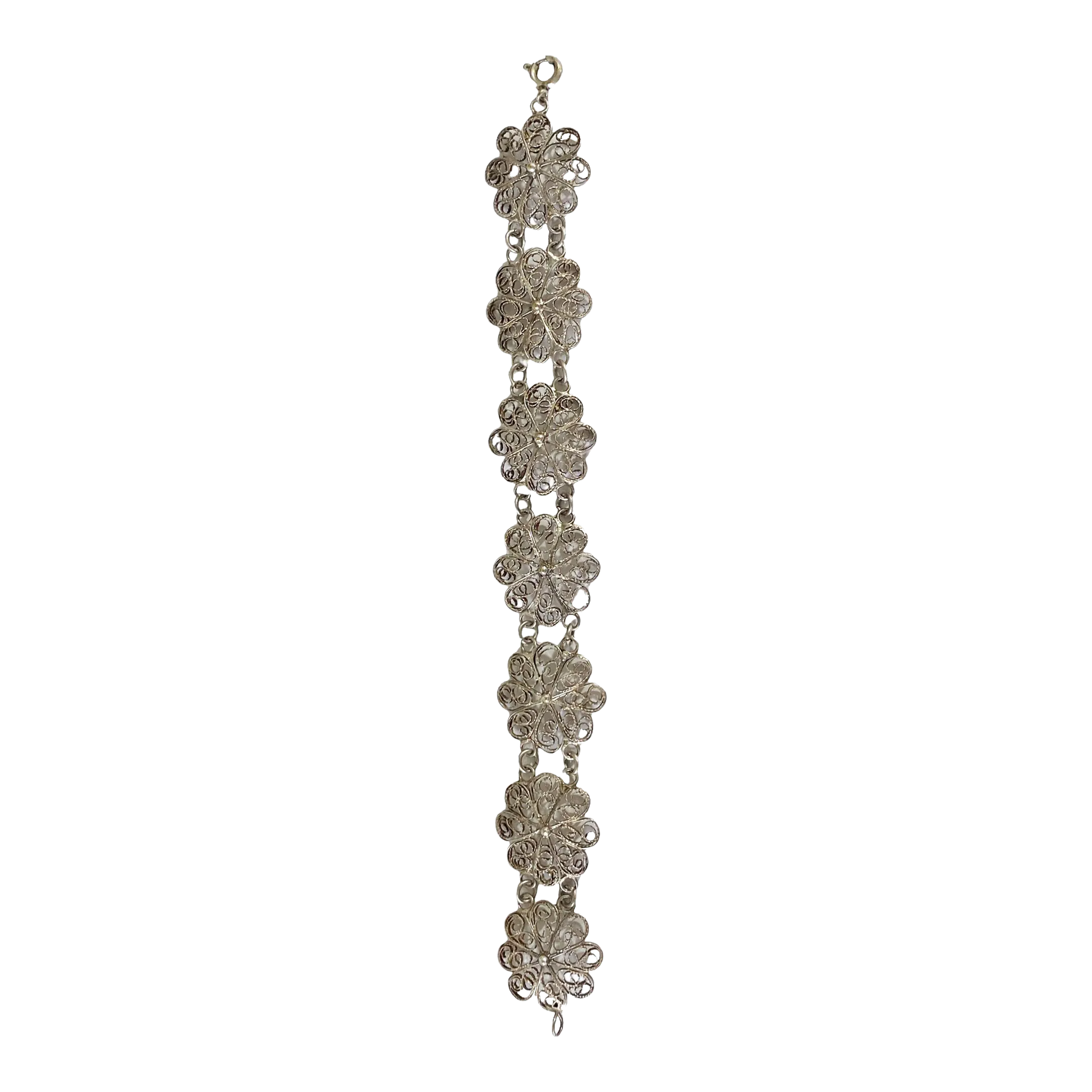Vintage Silver Portuguese Floral Filigree Panel Link Vintage Bracelet ...