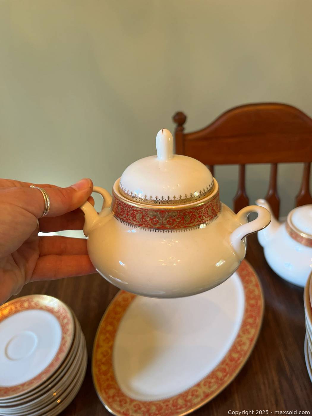 Pegasus porcelain red-gold filigree dinnerware set | Maxsold