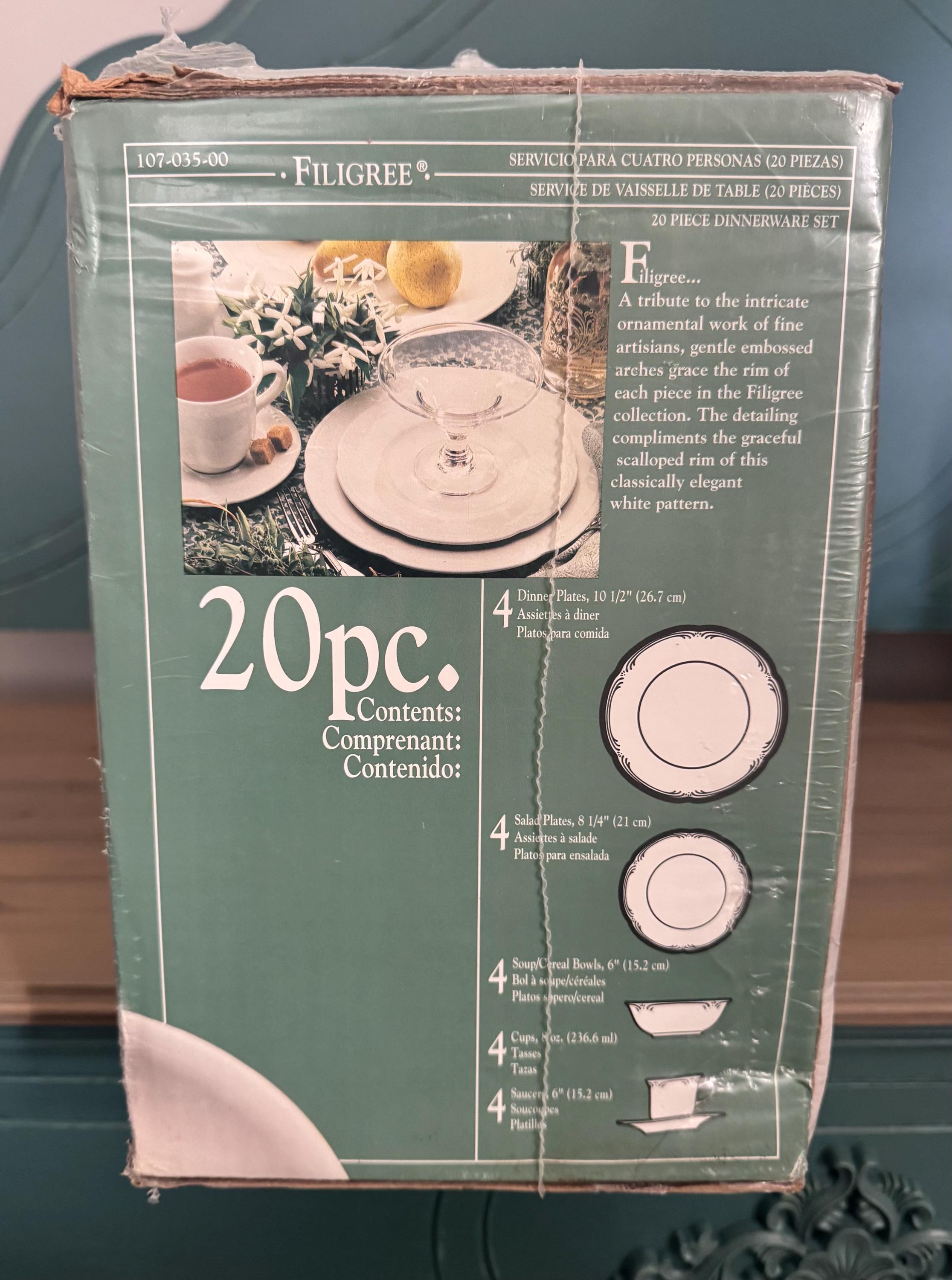 New Sealed Box Pfaltzgraff FILIGREE 20 Piece WHITE Dinnerware Set ...