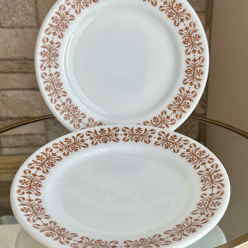 Pyrex COPPER FILIGREE Tableware Saucer MILK GLASS - Set of 2 | eBay