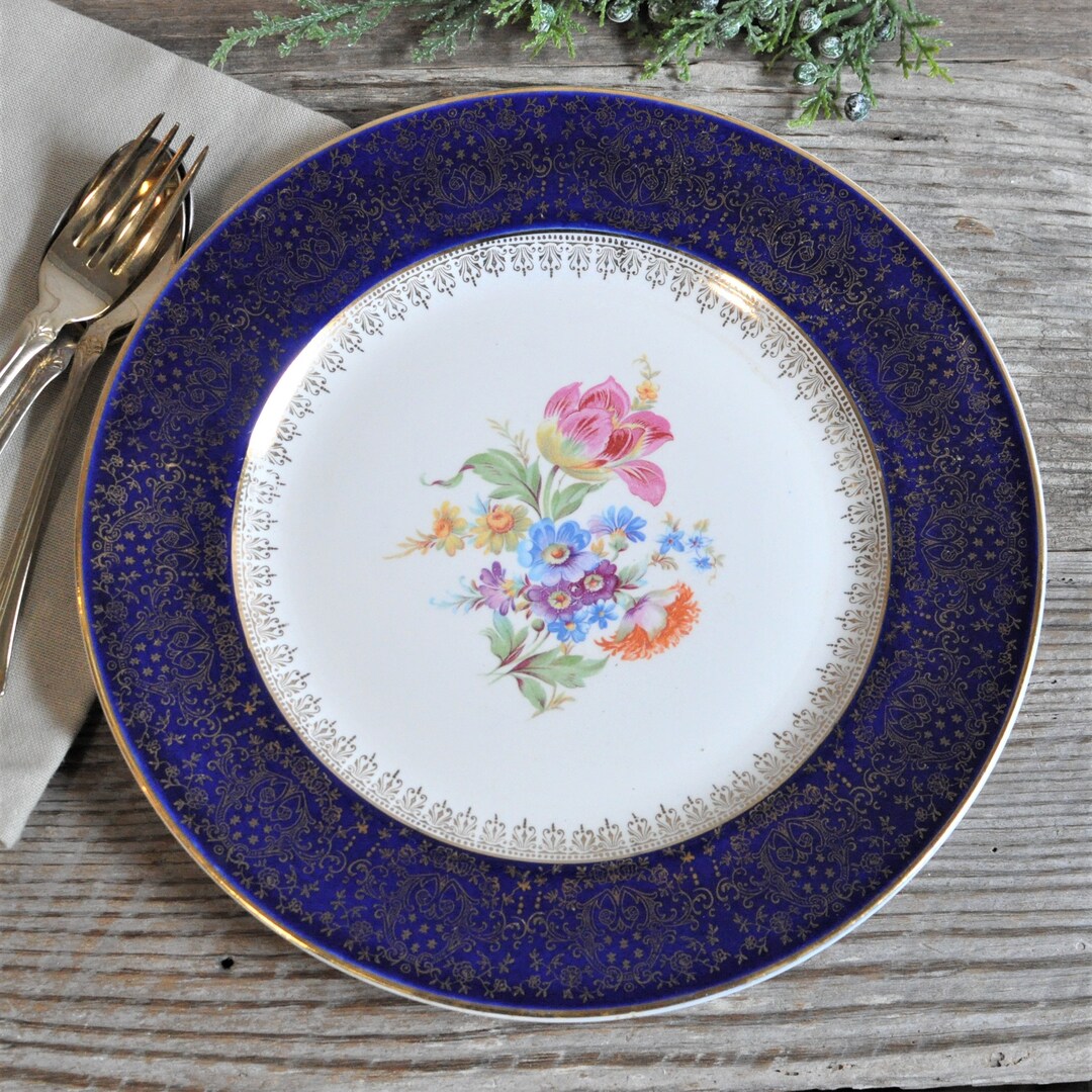 Homer Laughlin Cobalt Blue, Gold Filigree, Dinner Plate, Floral ...