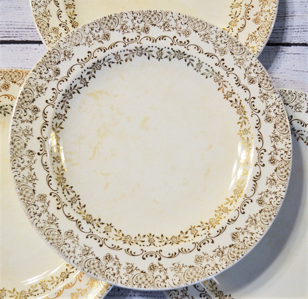 Vintage Gold Filigree Salad Plate Set of 4 Creamy White Floral Swirls ...