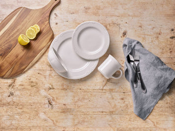 Denby Monsoon Filigree Silver 16 Piece Tableware set - McElhinneys