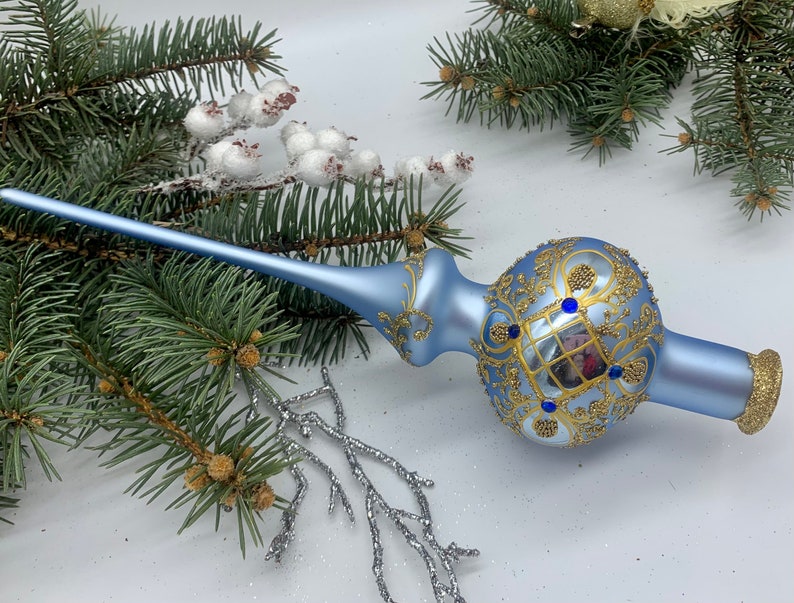 Blue Christmas Glass Tree Topper 10 Inches, Tree Topper Antique ...
