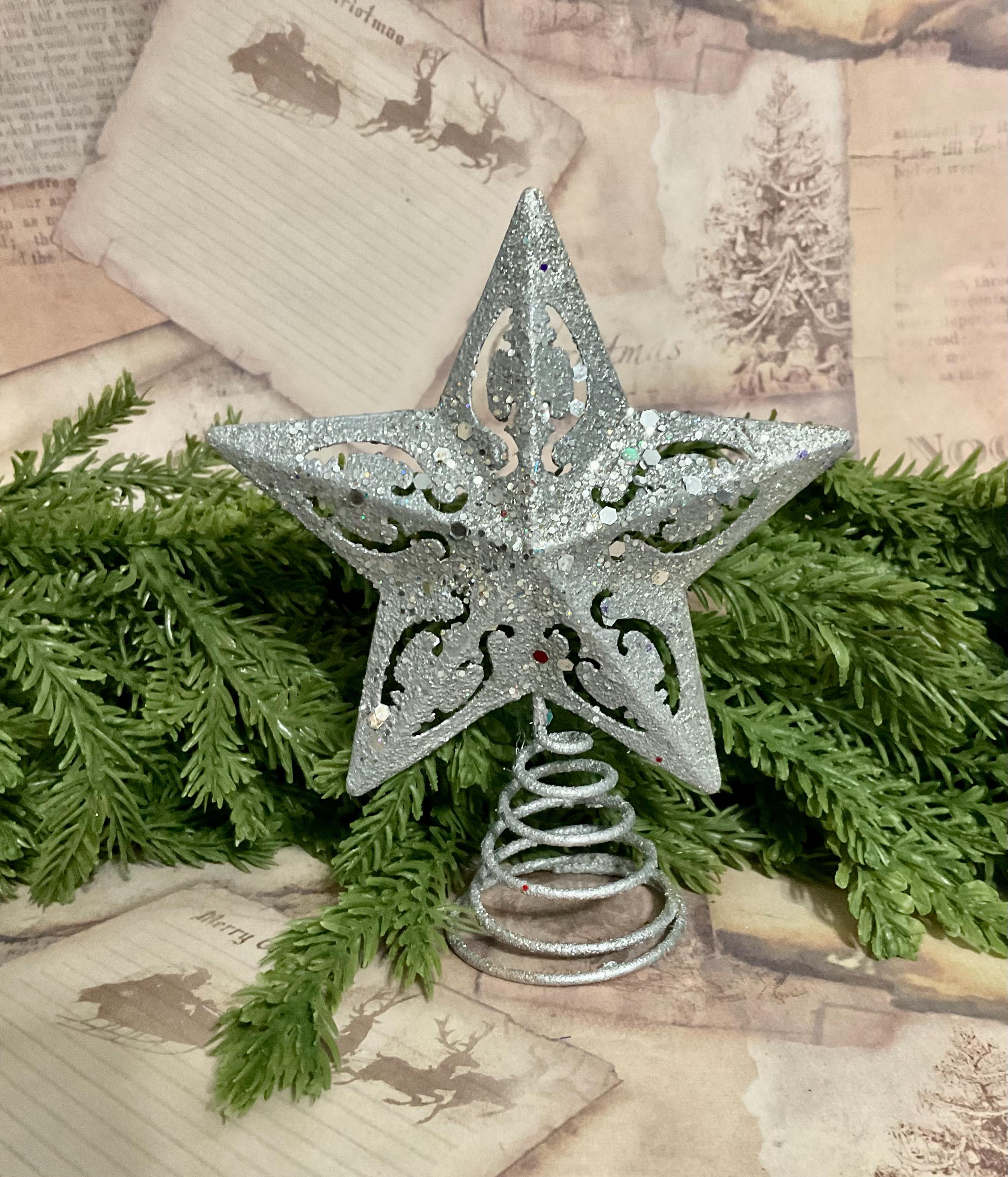 8" Glittery Silver Filigree Star Christmas Tree Topper - Etsy