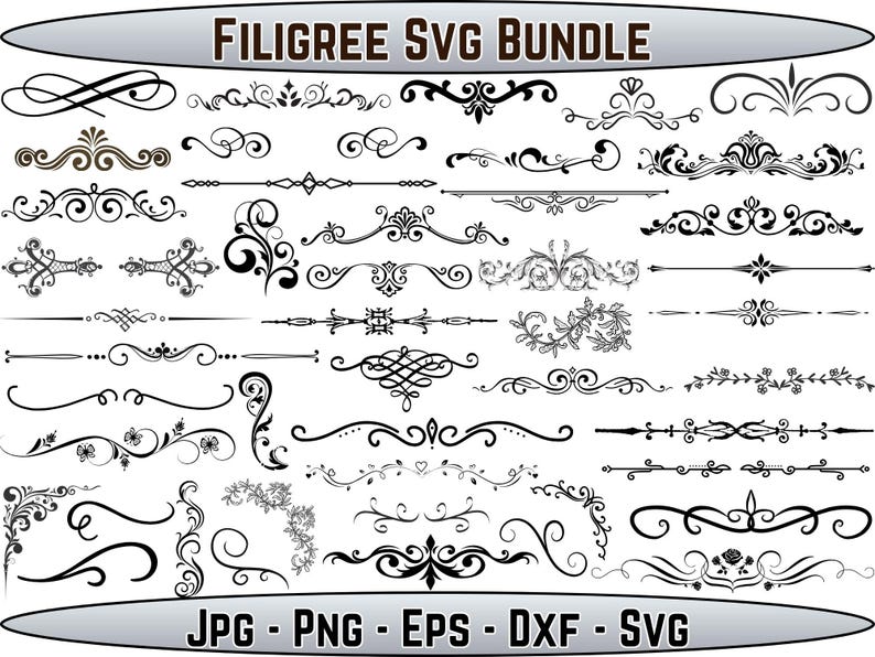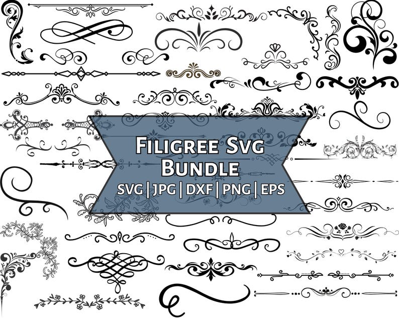 Filigree SVG Bundle - Ornamental Scroll Art Images - With Free ...