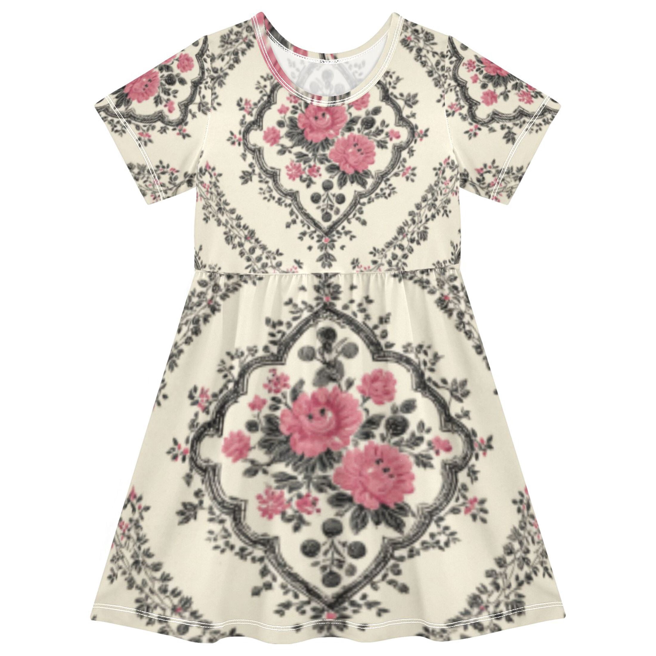DALAWU Short Sleeve Dress A-line Silhouette Elegant Blush Filigree Of ...
