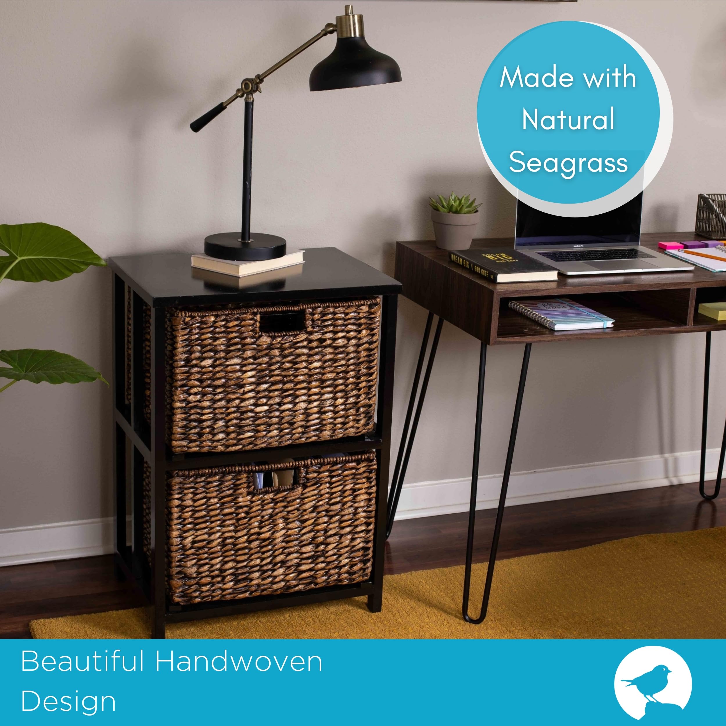 BirdRock Home Seagrass 2 Tier File Cubby Cabinet - Vertical Storage ...