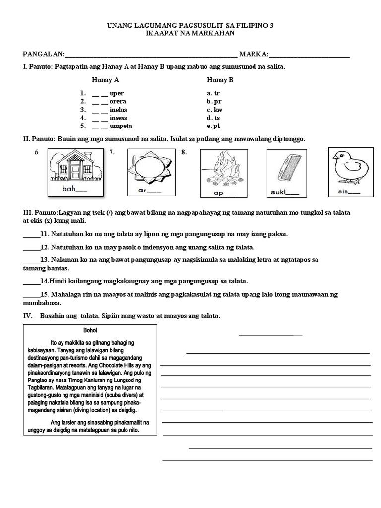 Pagsusulit SA Filipino 3 - PAGSUSULIT SA FILIPINO 3 I. PANGNGALAN ...