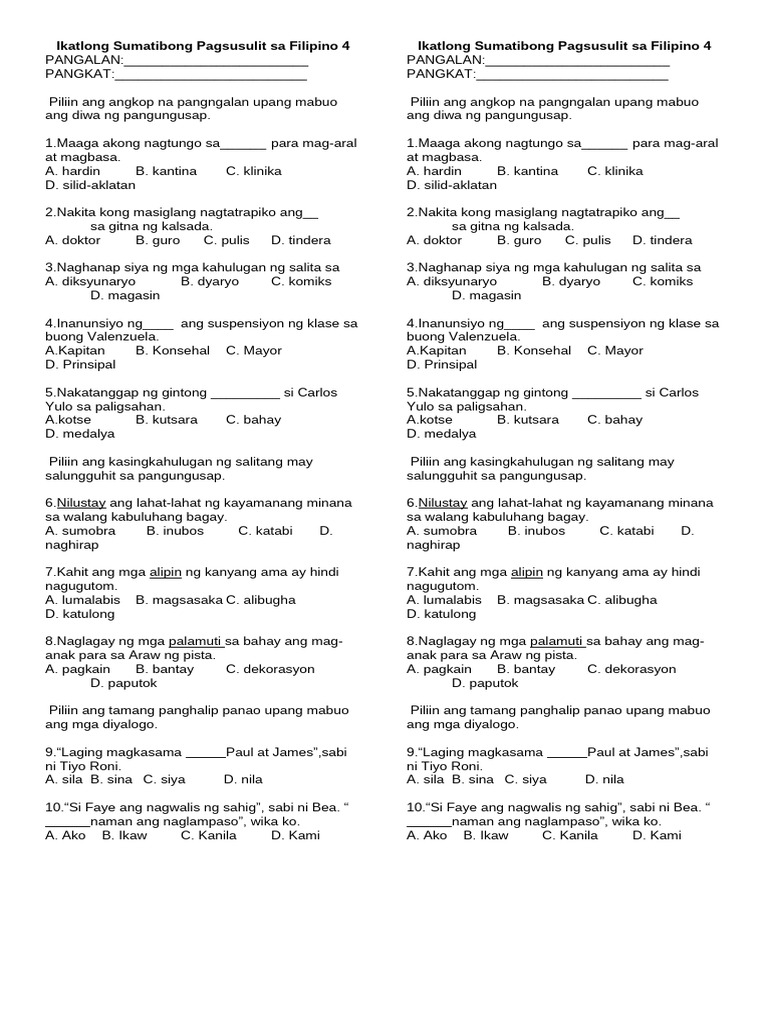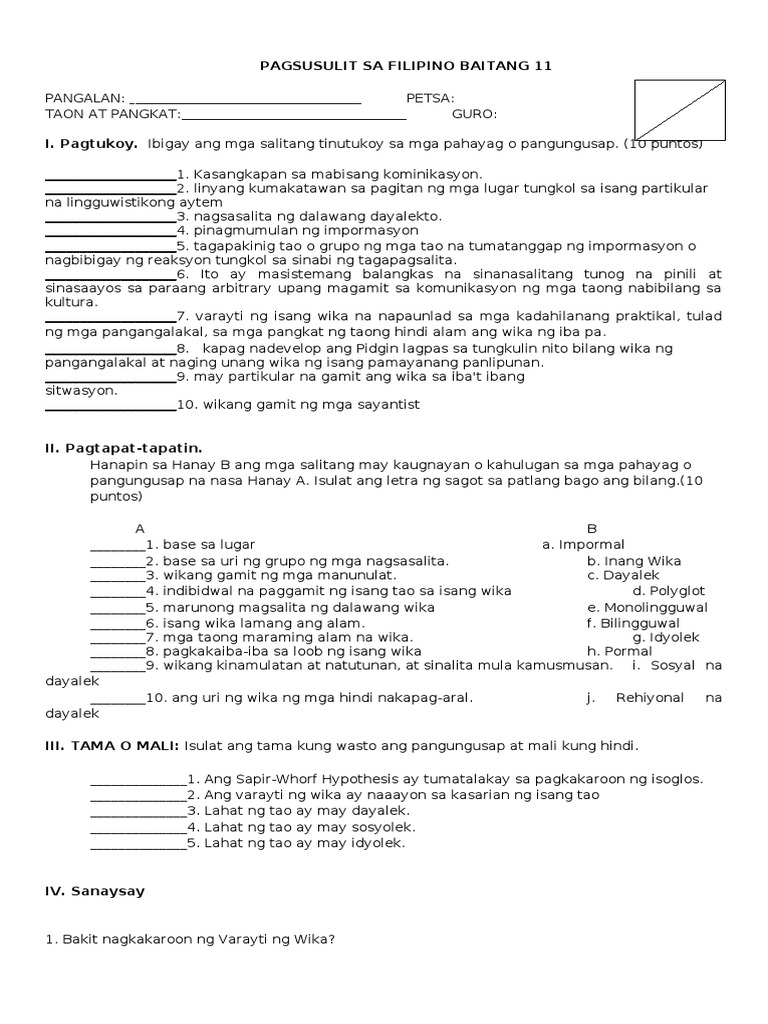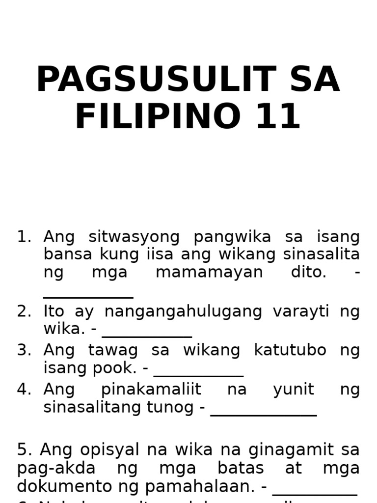 Maikling Pagsusulit Sa Filipino | PDF
