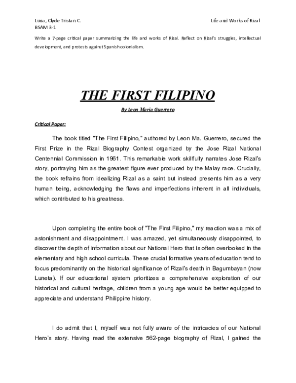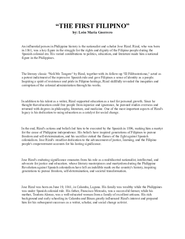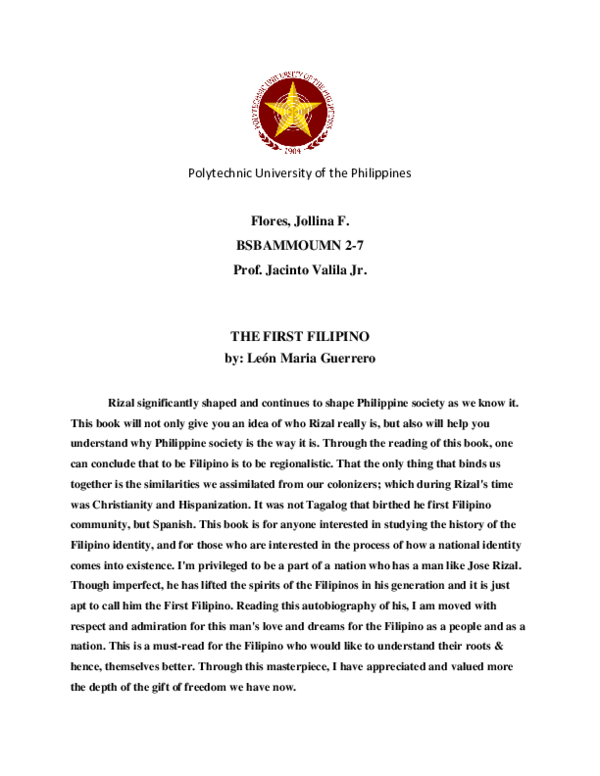 (PDF) REFLECTION ON THE FIRST FILIPINO BY LEON MA. GUERRERO