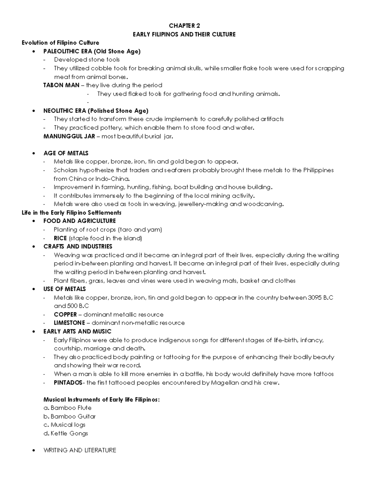 Chapter 2 Early Filipinos and their Culture-converted - CHAPTER 2 EARLY ...
