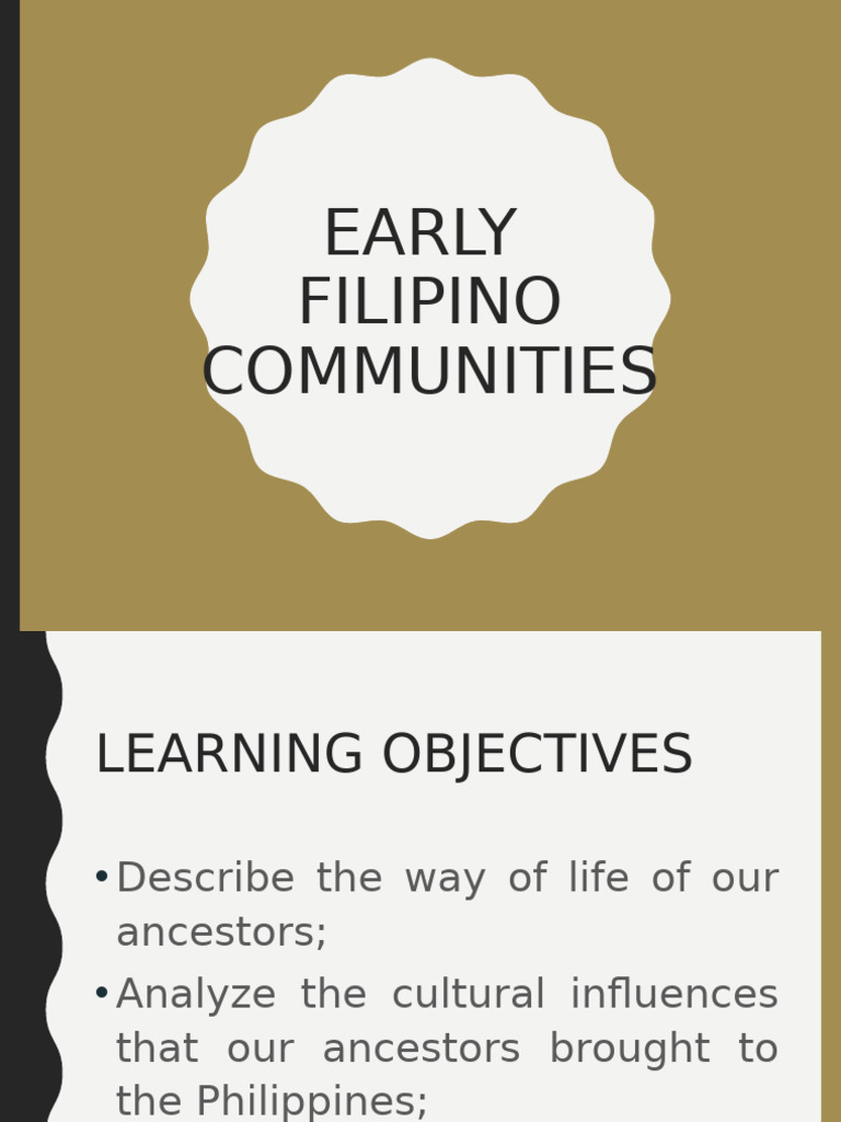 History - Lesson 1: Culture of Early Filipinos Community In early ...