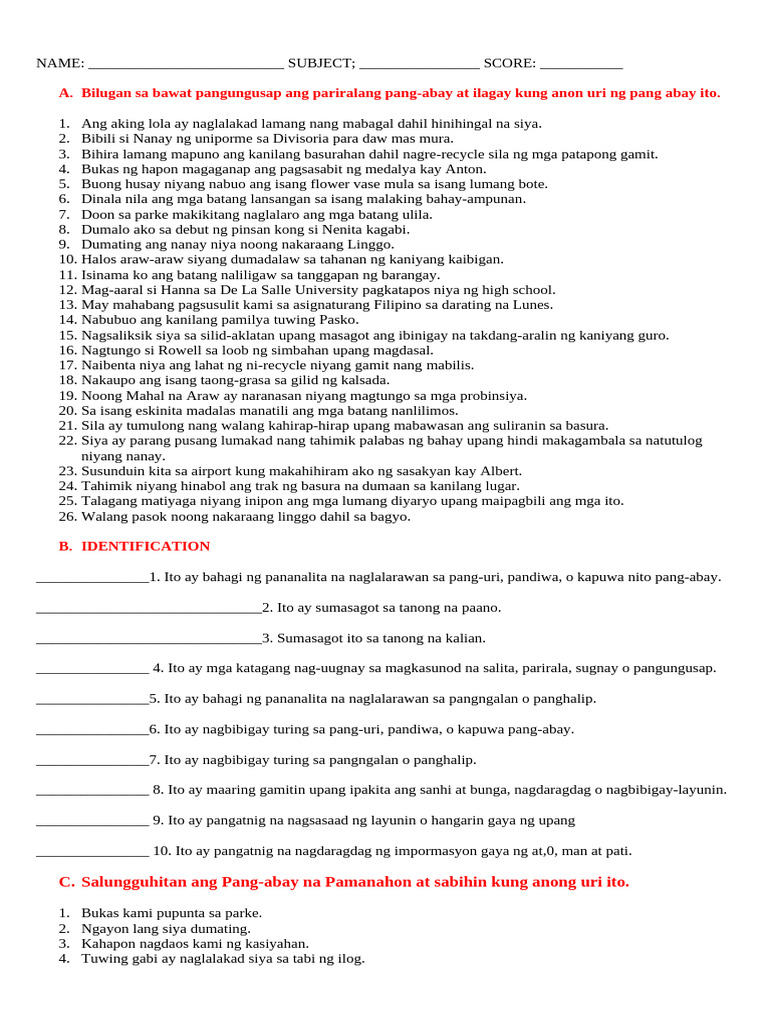 Filipino Exam First | PDF