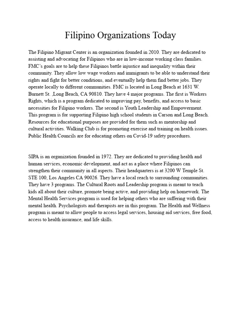 2-3 Organizations For Filipinos Project | PDF