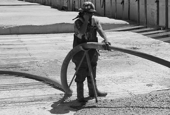 Worker filling the foundation slab of a building under construction ...