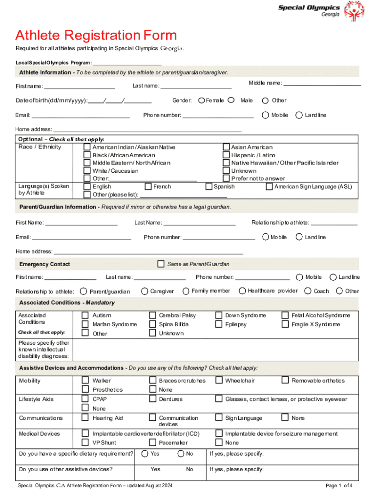 Special Olympics Georgia Athlete Registration Form - Fill Out, Sign ...