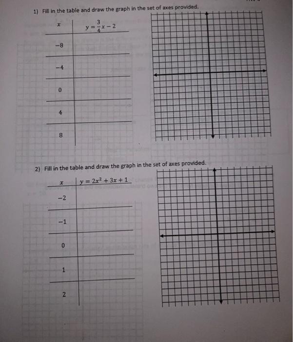 Solved 1) Fill in the table and draw the graph in the 2) | Chegg.com