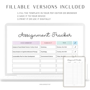 Fillable Assignment Tracker Printable, Student Journal, Student Planner ...