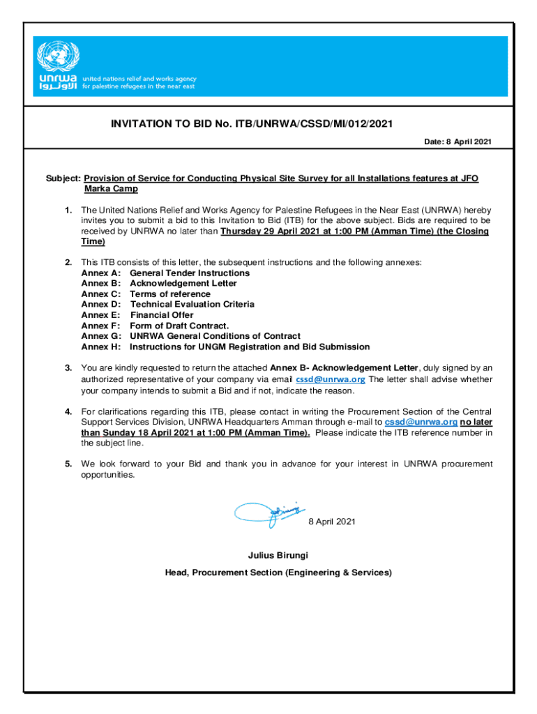 Invitation to Bid Doc Template | pdfFiller