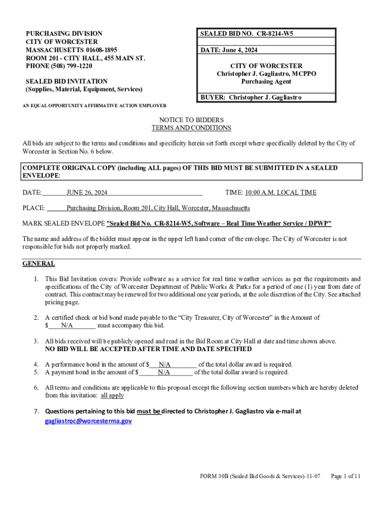 Fillable Online City of Worcester Sealed Bid Invitation for Software ...