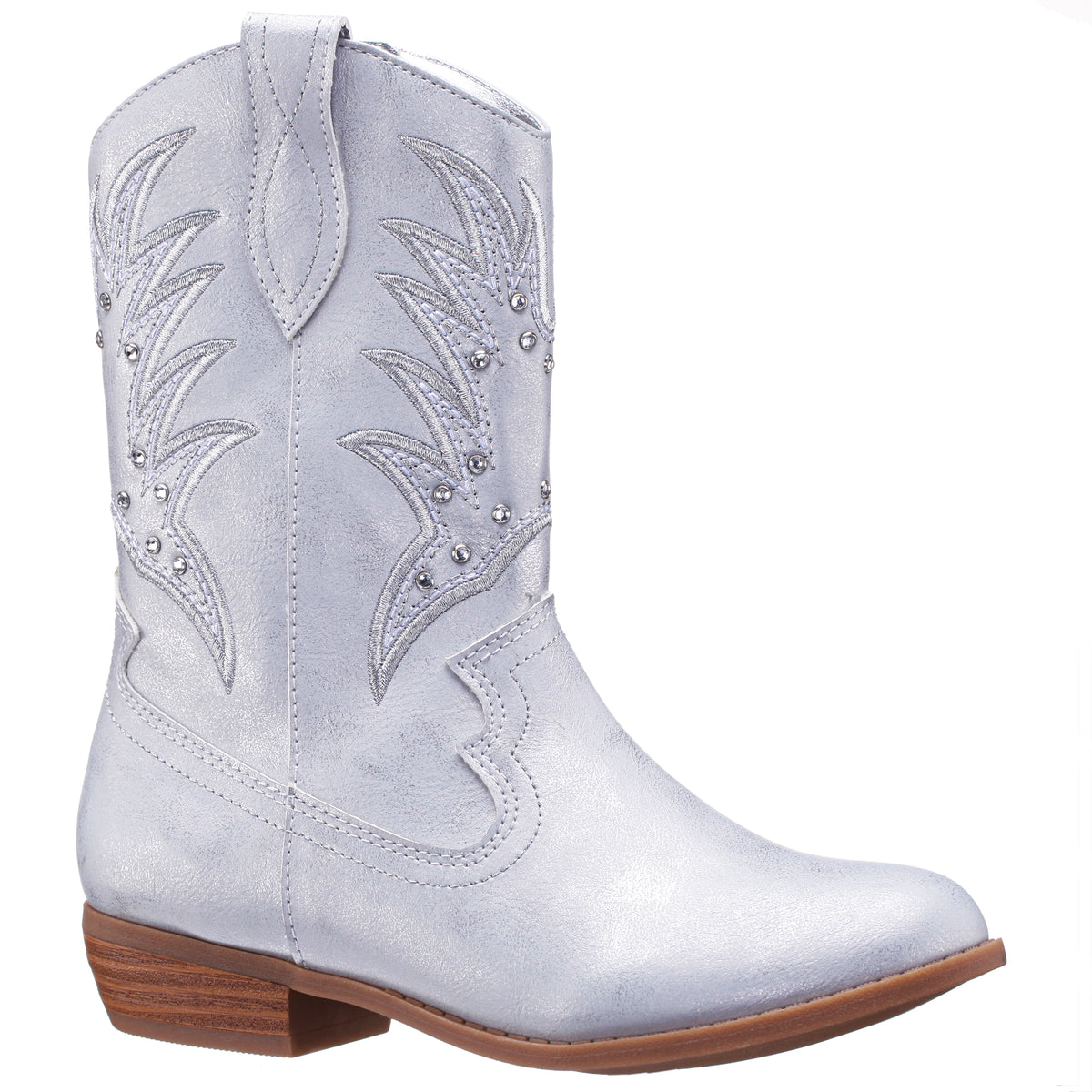 Girls Fillan Silver Metallic Inside Zip Cowboy Boots | Nina Shoes