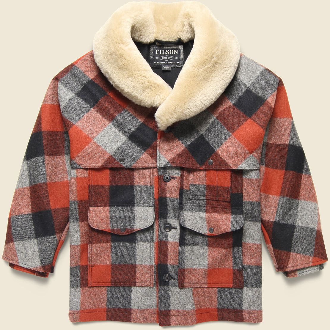 Filson Lined Wool Packer Coat - Red/Cream Ombre | Garmentory