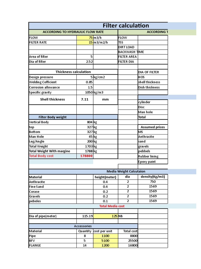 Filter Vessel Diameter and Height Calculation | PDF | Filtration ...