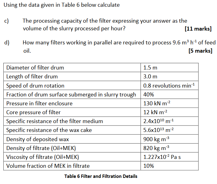 Using the data given in Table 6 below calculate c) | Chegg.com