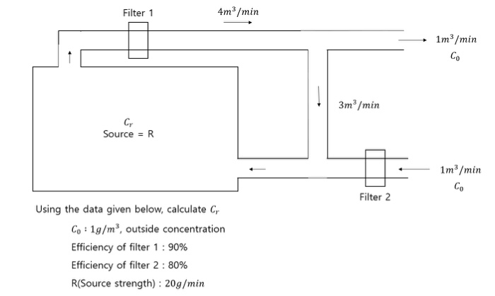 Solved Filter 1 4m3/min 1m3/min 3m/min Source = R 1m3/min | Chegg.com