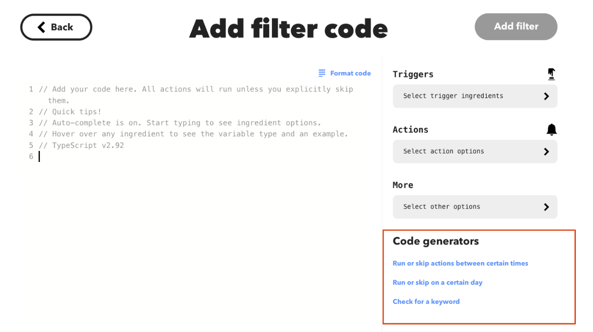 Filter code generators – IFTTT Help Center