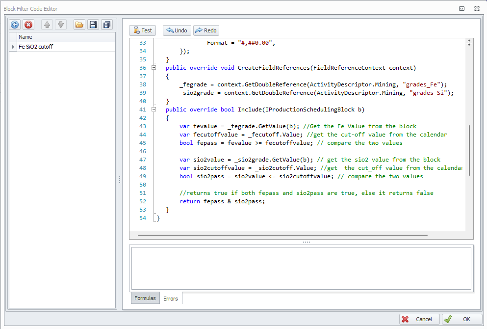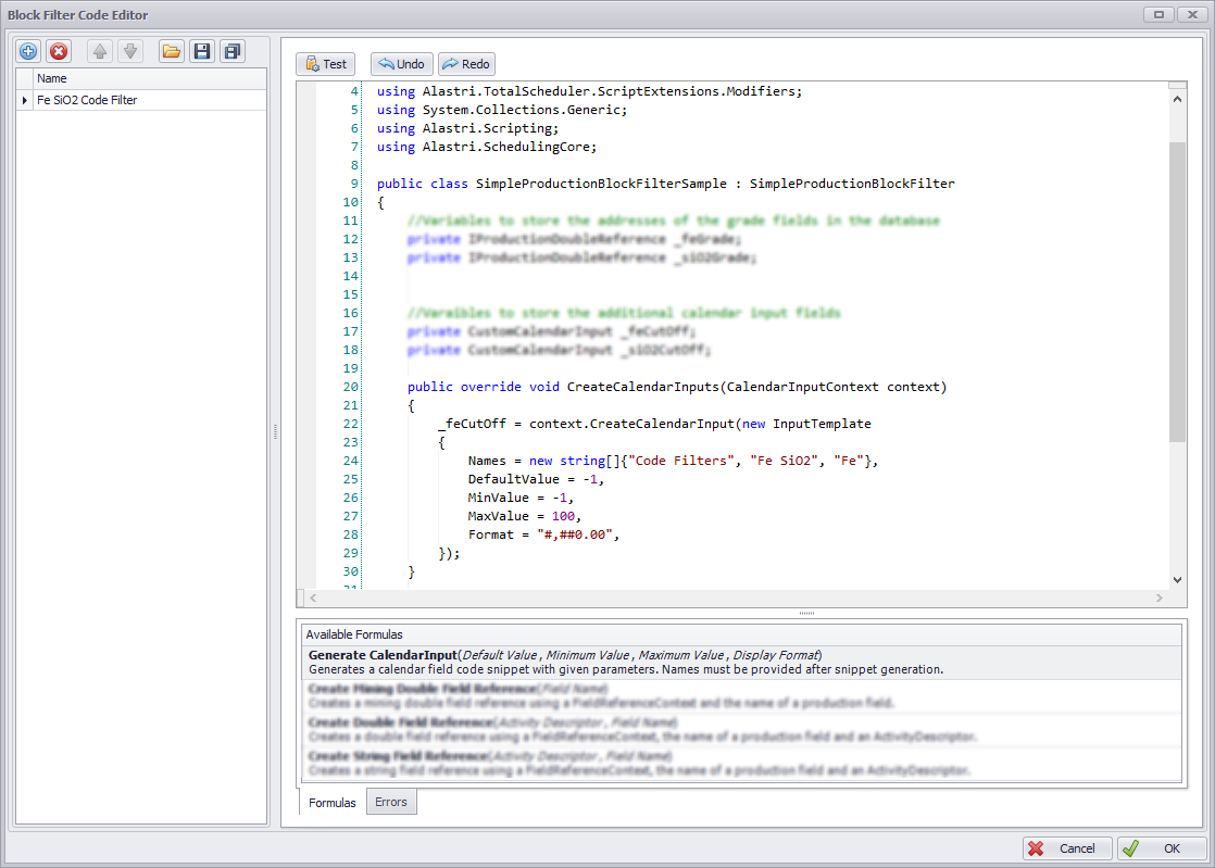 Define Filter Codes