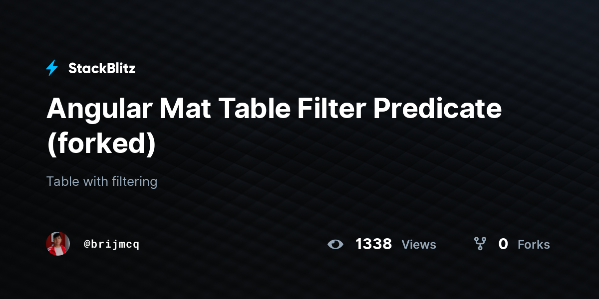 Angular Mat Table Filter Predicate (forked) - StackBlitz