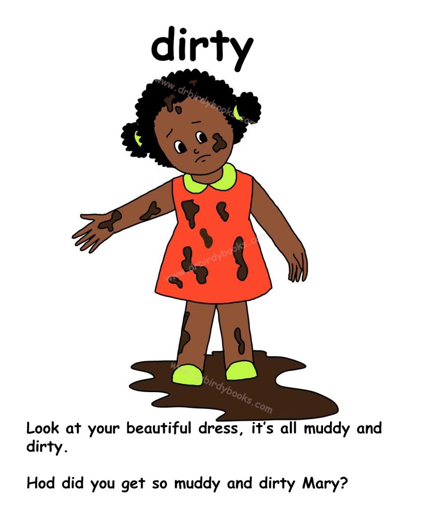 Vocabulary flash card for kids. dirty with picture of dirty (vocabulary ...