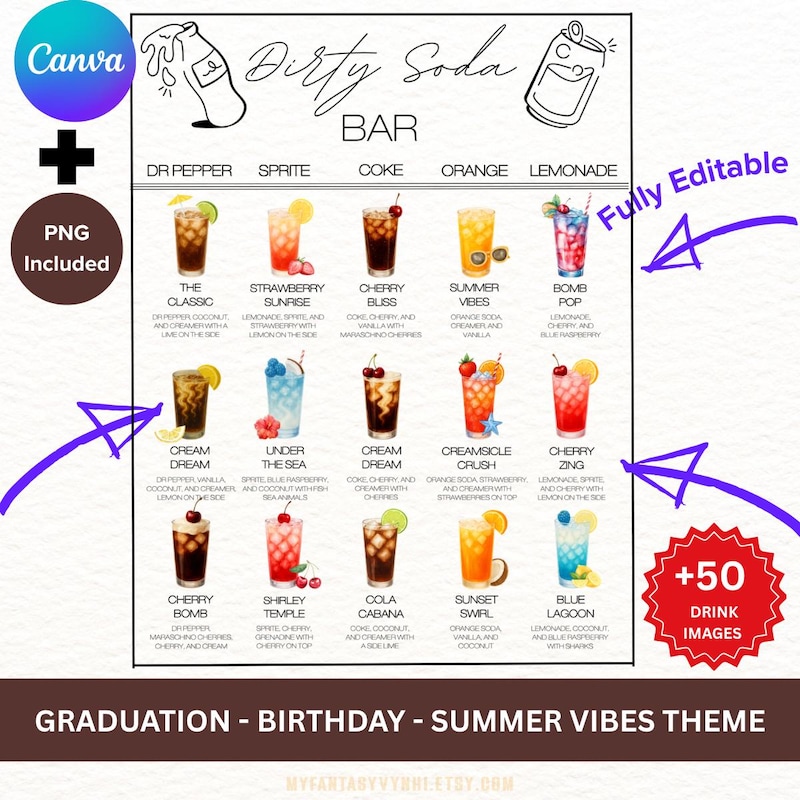 Dirty Soda Summer Menu - Etsy UK
