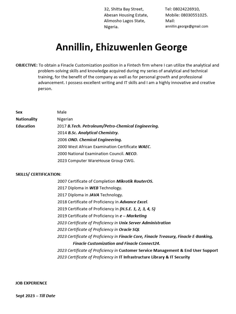Ehis Finacle CV | PDF | Computer Network | Scripting Language