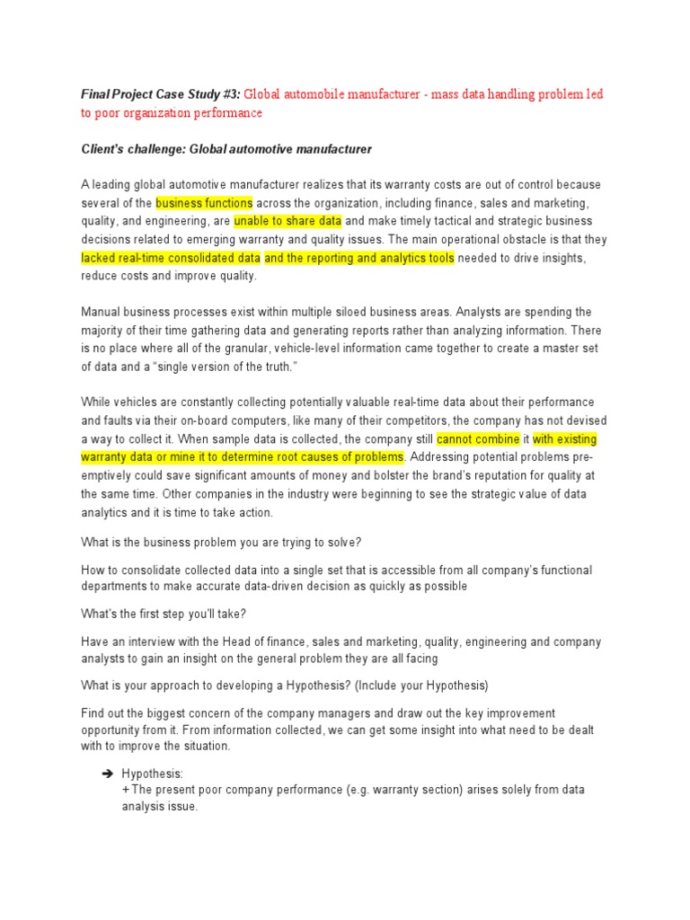 Final Case Study Outline - The Final Case Study exam challenges you to ...