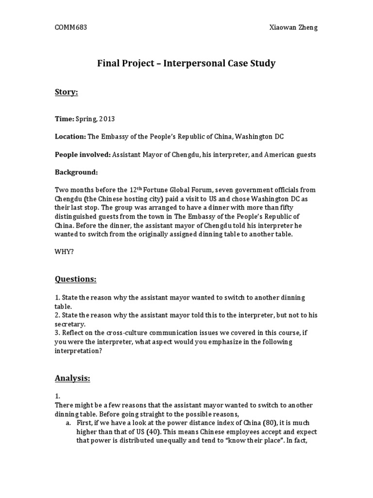 Final Project - Interpersonal Case Study: Story | PDF | China | World ...