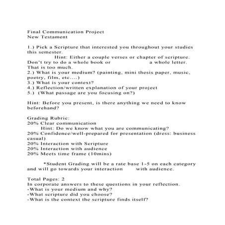 The final project for this course is the creation of a presentation .docx