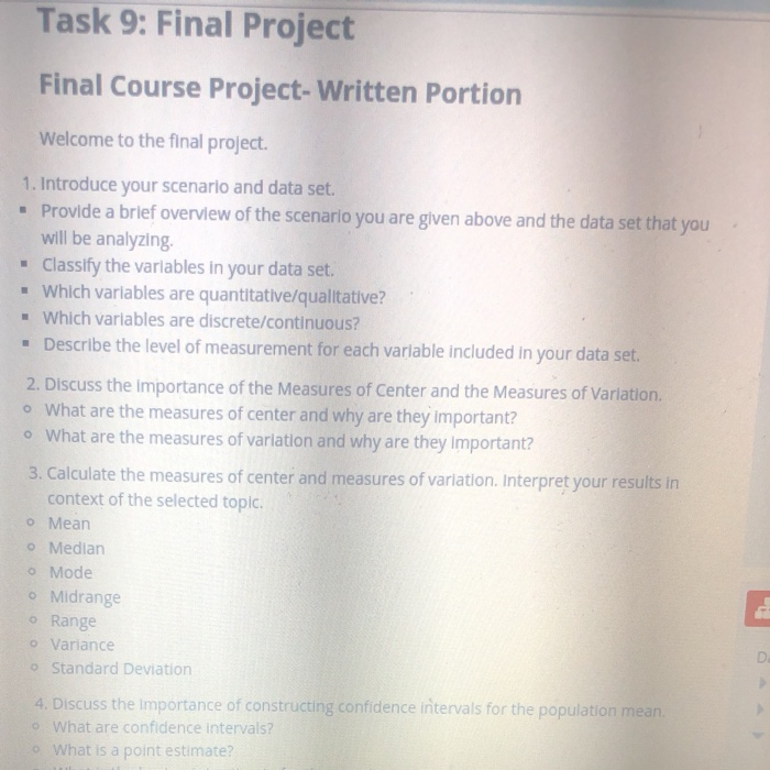 Solved Task 9: Final Project Final Course Project-Written | Chegg.com