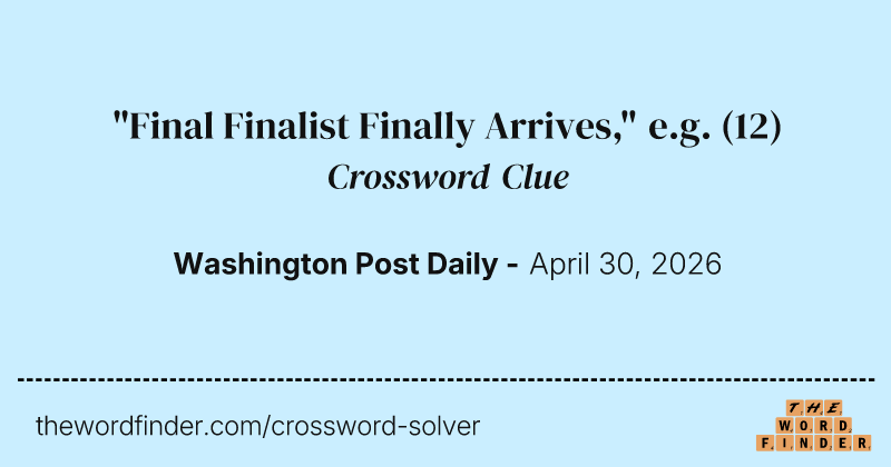 "Final Finalist Finally Arrives," e.g. — Crossword Clue