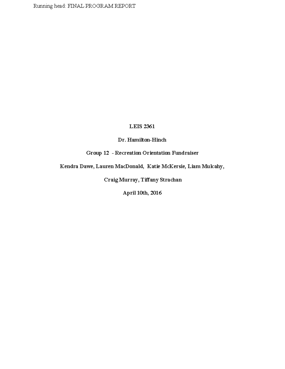 Group Orientation Program Planning Paper - Running head: FINAL PROGRAM ...