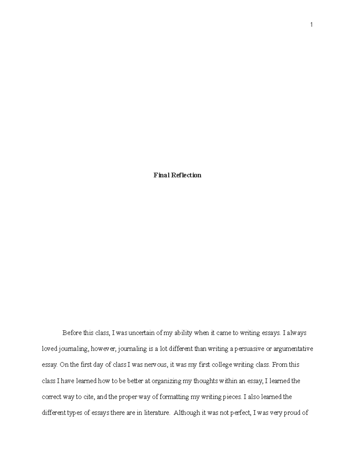 THE FINAL SELF-REFLECTION Essay Example | Topics and Well Written ...