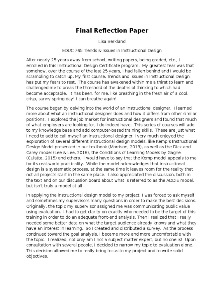 Final Reflection Paper 2 | PDF | Instructional Design | Learning Theory ...