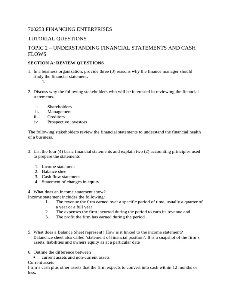 Intro to Finance | Tutorial 2 | Fin Statements & Cash-flow Formula ...