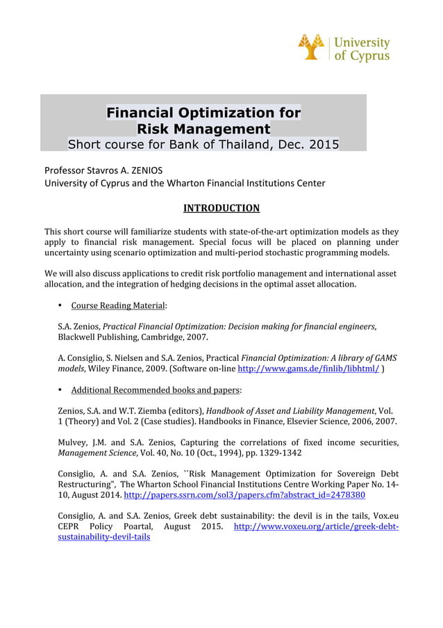 PPT - Financial Optimization and Risk Management PowerPoint ...