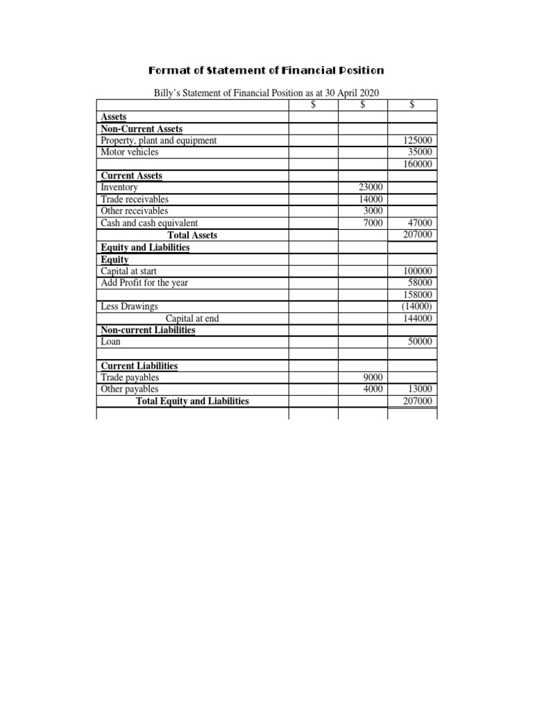 Sample Statement of Financial Position | PDF
