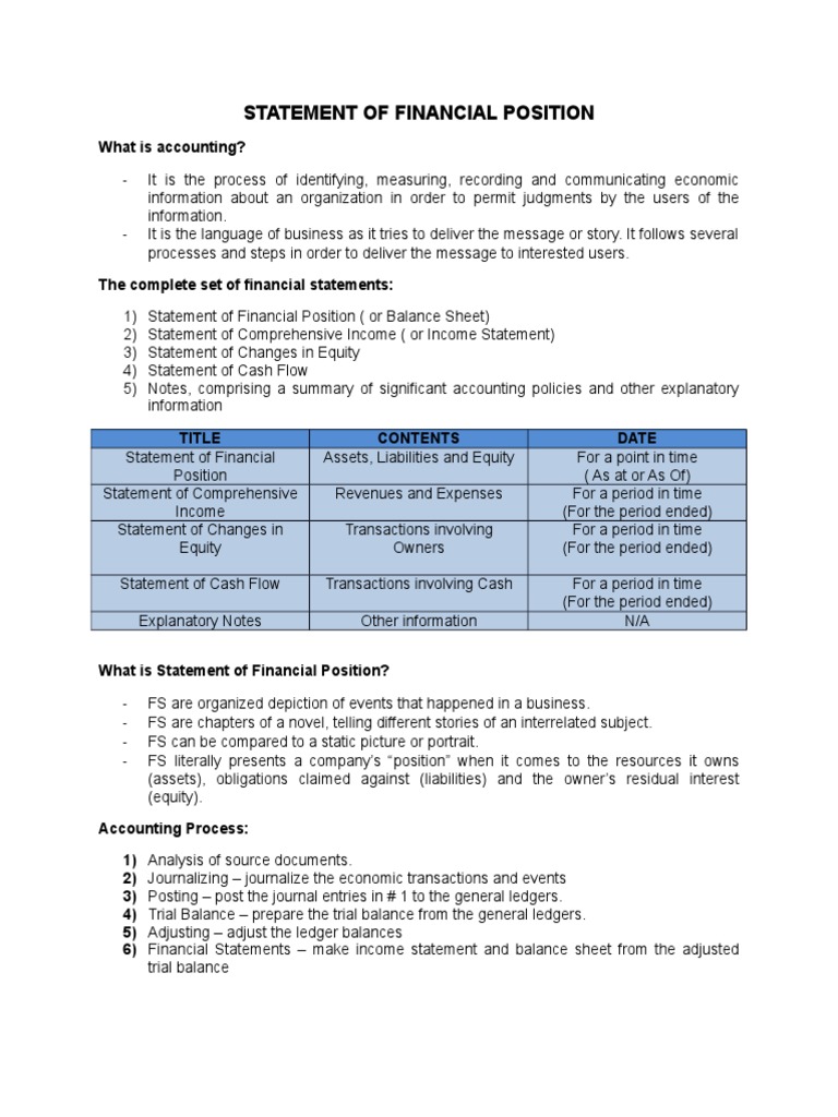 Statement of Financial Position: Definition, Composition and ...