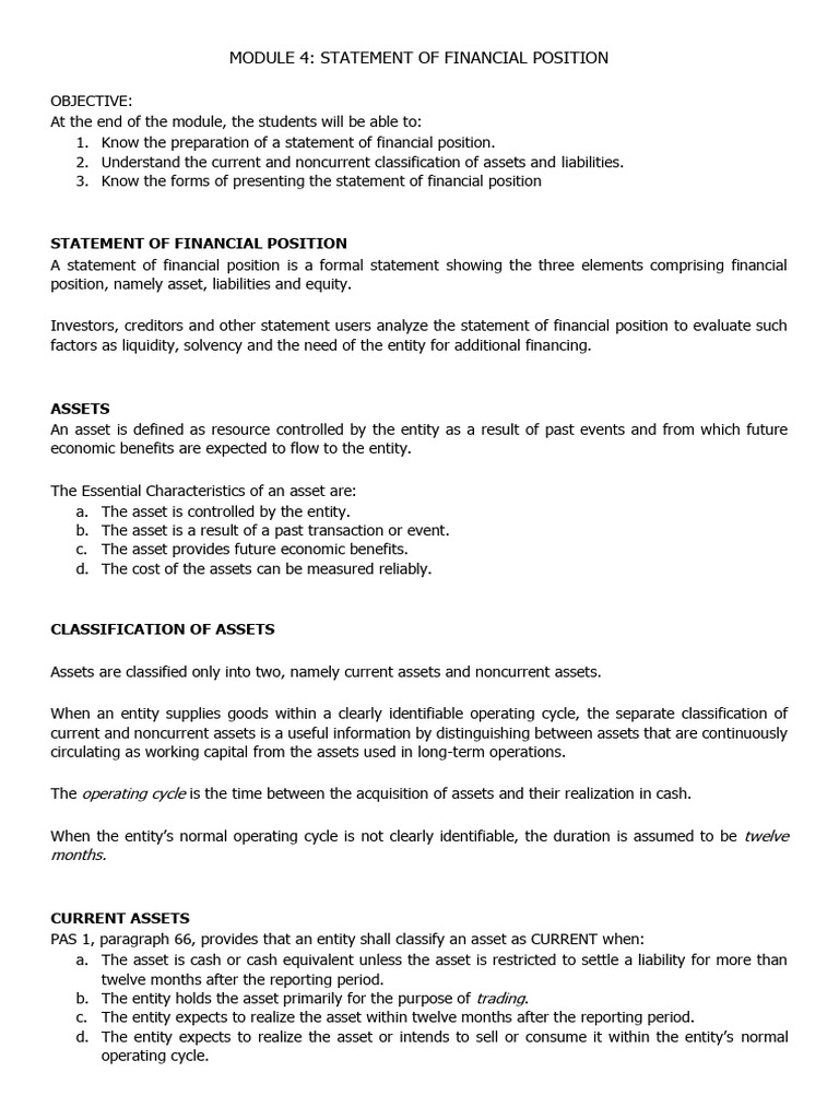 Module 4 Statement of Financial Position | PDF | Equity (Finance ...
