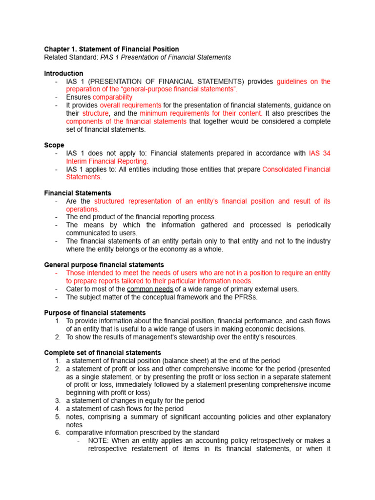1. Statement of FInancial Position and Notes to FS - 1 IAS 1 ...